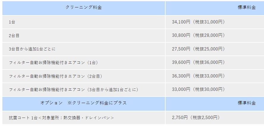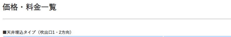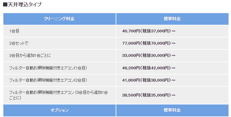 事業所用のエアコンクリーニング<天井埋込タイプ>料金表