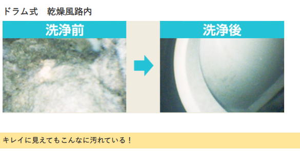 ドラム式洗濯乾燥機(乾燥フィルターがある機種)の場合、乾燥風路に溜まった繊維クズも除去。クリ―ニング前と比較して乾燥しやすくなります。(ダスキン調べ)